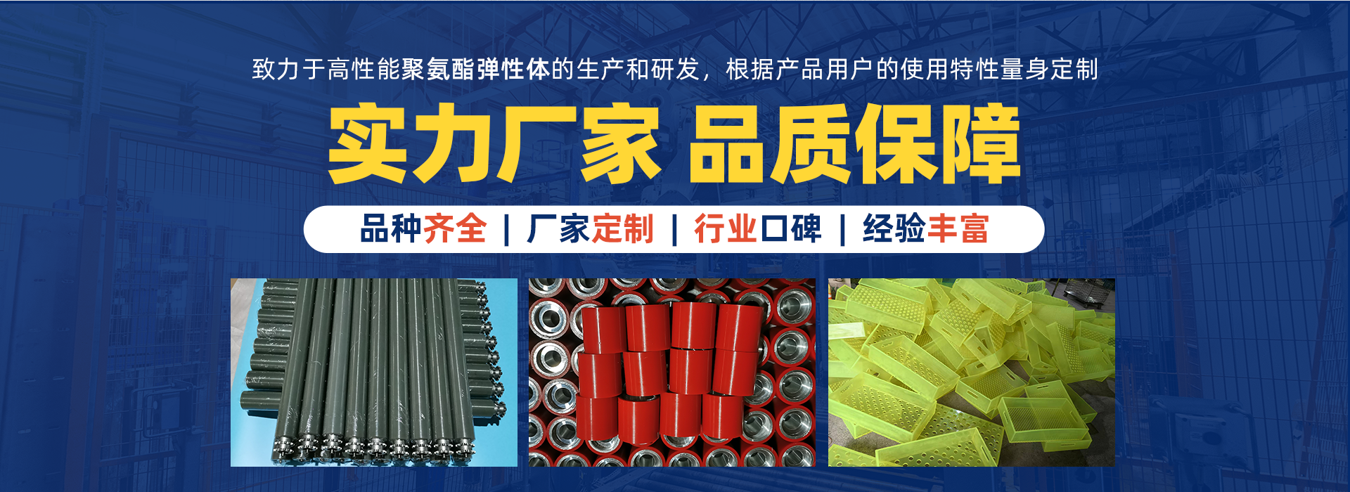 蘇州凱騰聚氨酯制品有限公司多年來一直致力于高性能聚氨酯彈性體的生產(chǎn)和研發(fā)。鑒于聚氨酯彈性體的特殊的出色性能,幾乎所有的工業(yè)系統(tǒng)中都會使用到聚氨酯彈性體的產(chǎn)品,我們的產(chǎn)品服務于眾多的行業(yè)如:石油、礦山、冶金、工程機械、汽車制造、多晶硅生產(chǎn)、核工業(yè)項目、紡織印染包裝、農(nóng)牧、金屬加工、水泥陶瓷、糧食碼頭、物流倉儲自動化、粉體成型與研磨等等;由于不同的行業(yè)和工況條件對聚氨酯彈性體的產(chǎn)品的使用性能要求是不同的,我們可以根據(jù)用戶產(chǎn)品特別的使用特性專門為用戶量身定制產(chǎn)品。 了解更多+